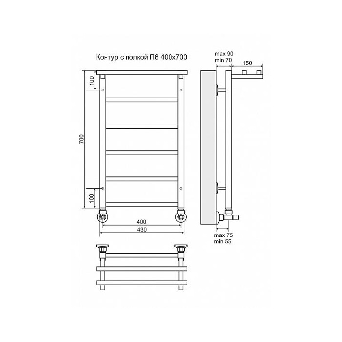 Полотенцесушитель водяной Terminus Контур с полкой П6 400x700