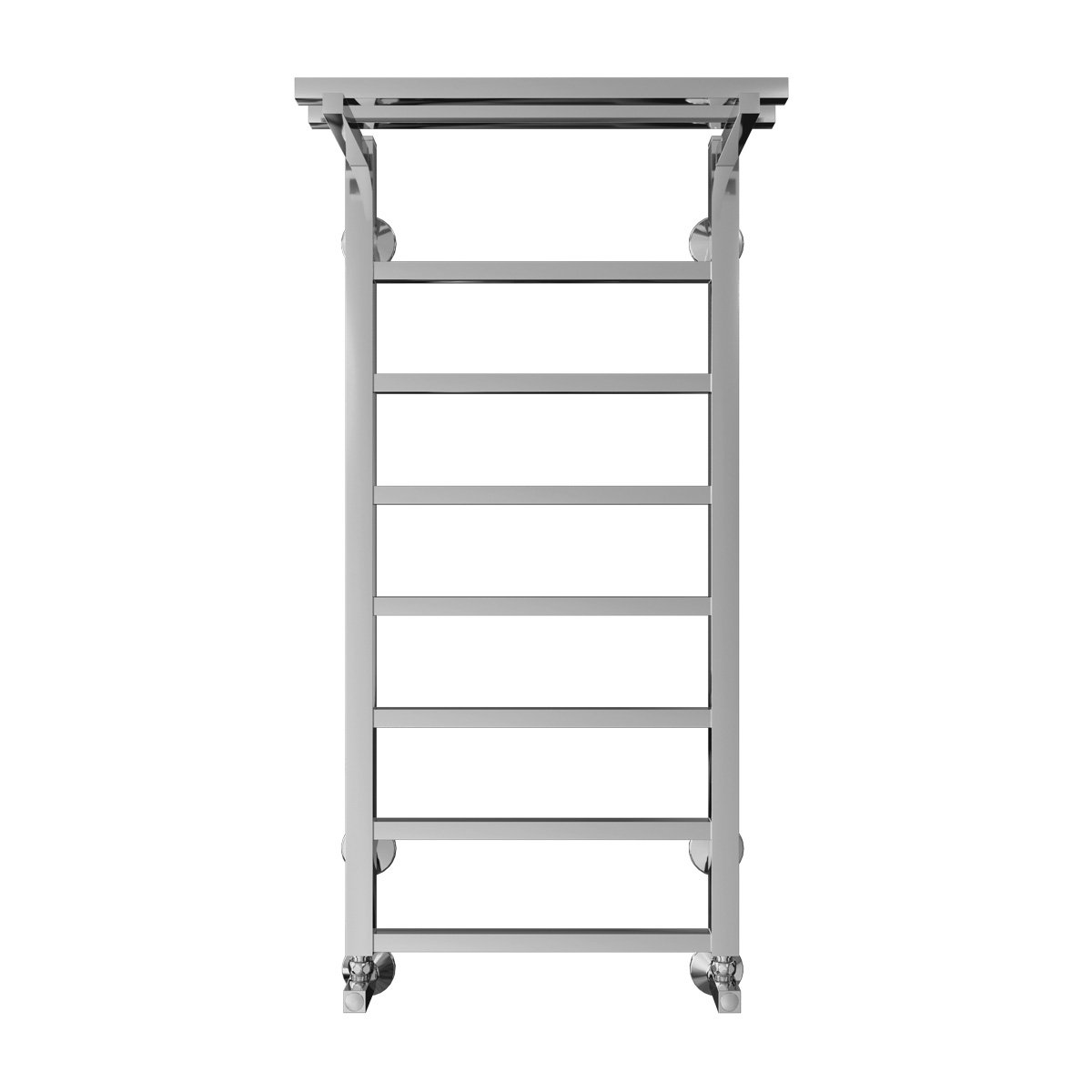 Полотенцесушитель водяной Terminus Контур с полкой П8 400x900 - известная модель, сделанная из прочного материала - нержавеющей стали, которая предусматривает обогрев всего помещения. Отопительное оборудование имеет форму лесенку и размеры: ширина - 47.4 см, глубина - 15 см, высота - 90 см., что разрешает ему идеально разместиться в пространстве помещения. Межосевой промежуток составляет 40 см, а диаметр подводки достигает 1/2 дюйма. Подвесной санмонтаж и горизонтальное или нижнее направление присоединения дают возможность легко разместить полотенцесушитель и подключить его к системе горячего водоснабжения или к системе центрального отопления. Модель линейки Контур великолепно справляется с неожиданными изменениями давления или температуры, а специальная конструкция гарантирует многолетний период эксплуатации. Гарантийное обслуживание на товар бренда Terminus составляет 10 лет. Модель является лучшей в своем ценовом сегменте, изготавливается в России и качественно выполняет свои функции.