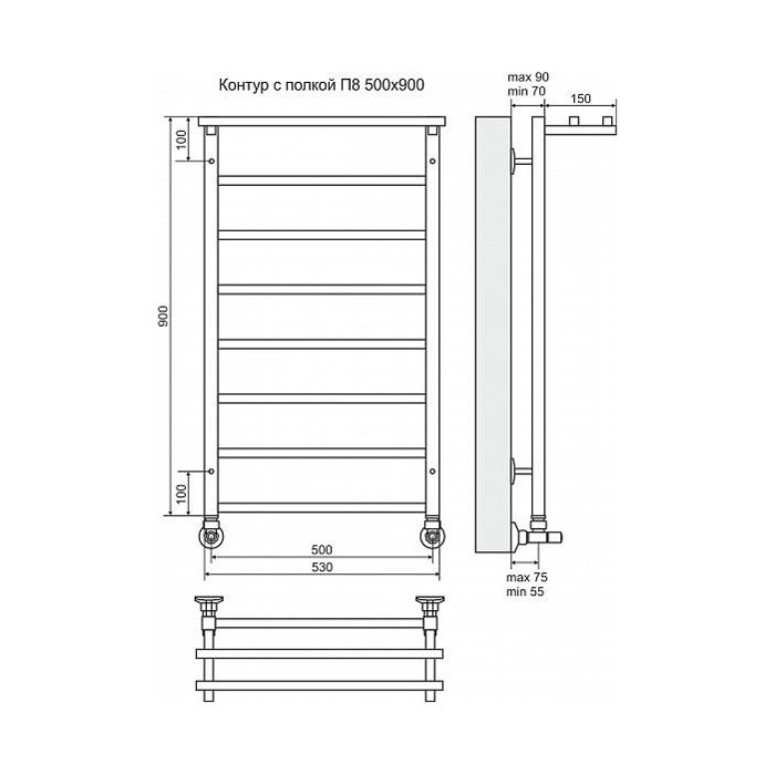 Полотенцесушитель водяной Terminus Контур с полкой П8 500x900