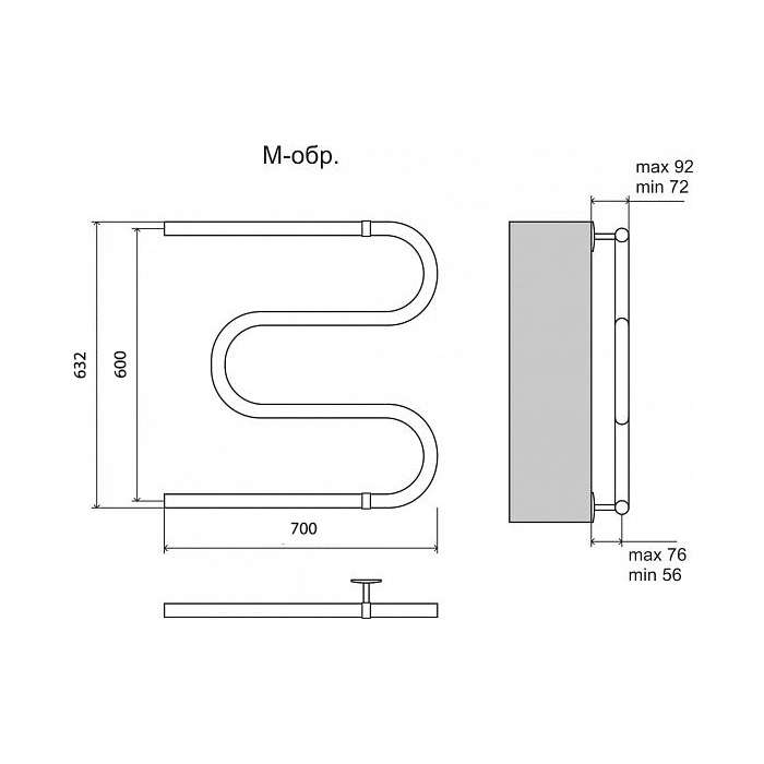 Полотенцесушитель водяной Terminus М-образный (1") 600x700 - современная модель, изготовленная из ударопрочного материала - нержавеющей стали, которая осуществляет равномерный обогрев пространства. Отопительное оборудование имеет форму М-образную и параметры: ширина - 70 см, глубина - 7.2 см, высота - 63.2 см., что разрешает ему идеально вписаться в пространство комнаты. Межосевой интервал составляет 60 см, а диаметр подводки достигает 1 дюйма. Подвесной монтаж и вертикальное или боковое направление присоединения дают возможность с легкостью расположить полотенцесушитель и подключить его к системе горячего водоснабжения или к системе центрального отопления. Модель линейки М-образный превосходно справляется с резкими перепадами давления или температуры, а продуманная конструкция обеспечивает многолетний срок эксплуатации. Гарантийное обслуживание на товар бренда Terminus действует 10 лет. Сушилка для полотенец считается лучшей в своем ценовом классе, производится в России и качественно выполняет свои функции.