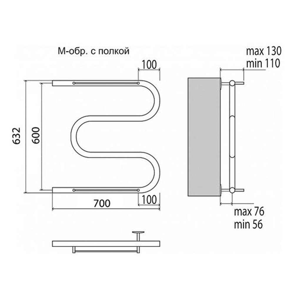 Полотенцесушитель водяной Terminus М-образный с полкой 600x700 - известная модель, сделанная из прочного материала - нержавеющей стали, которая предусматривает обогрев всего пространства. Оборудование имеет форму М-образную и размеры: ширина - 70 см, глубина - 11 см, высота - 63.2 см., что дает возможность ему как нельзя лучше вписаться в пространство комнаты. Межосевой интервал составляет 60 см, а диаметр подводки достигает 1 дюйма. Подвесной монтаж и вертикальное или боковое направление подключения дают возможность легко установить полотенцесушитель и подключить его к системе горячего водоснабжения или к системе центрального отопления. Модель линейки М-образный превосходно справляется с изменениями давления или температуры, а продуманная конструкция гарантирует долгий срок эксплуатации. Гарантийное обслуживание на товар бренда Terminus составляет 10 лет. Сушилка для полотенец считается лучшей в своем ценовом классе, производится в России и отлично выполняет свои задачи.