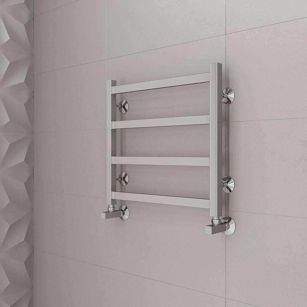 Полотенцесушитель водяной Terminus Ното П4 50х50 - популярная модель, выполненная из надежного материала - нержавеющей стали, которая осуществляет равномерный обогрев помещения. Оборудование имеет форму лесенку и параметры: ширина - 53.2 см, глубина - 7.4 см, высота - 50 см., что позволяет ему прекрасно вписаться в пространство комнаты. Межосевой интервал равен 50 см, а диаметр подводки достигает дюйма. Подвесной санмонтаж и горизонтальное, нижнее направление подсоединения дают возможность легко установить полотенцесушитель и подключить его к системе горячего водоснабжения. Модель линейки Ното замечательно справляется с резкими изменениями давления или температуры, а специальная конструкция обеспечивает длительный срок использования. Официальная гарантия на товар бренда Terminus действует 10 лет. Модель считается лучшей в своем ценовом классе, производится в России и качественно выполняет свои задачи.