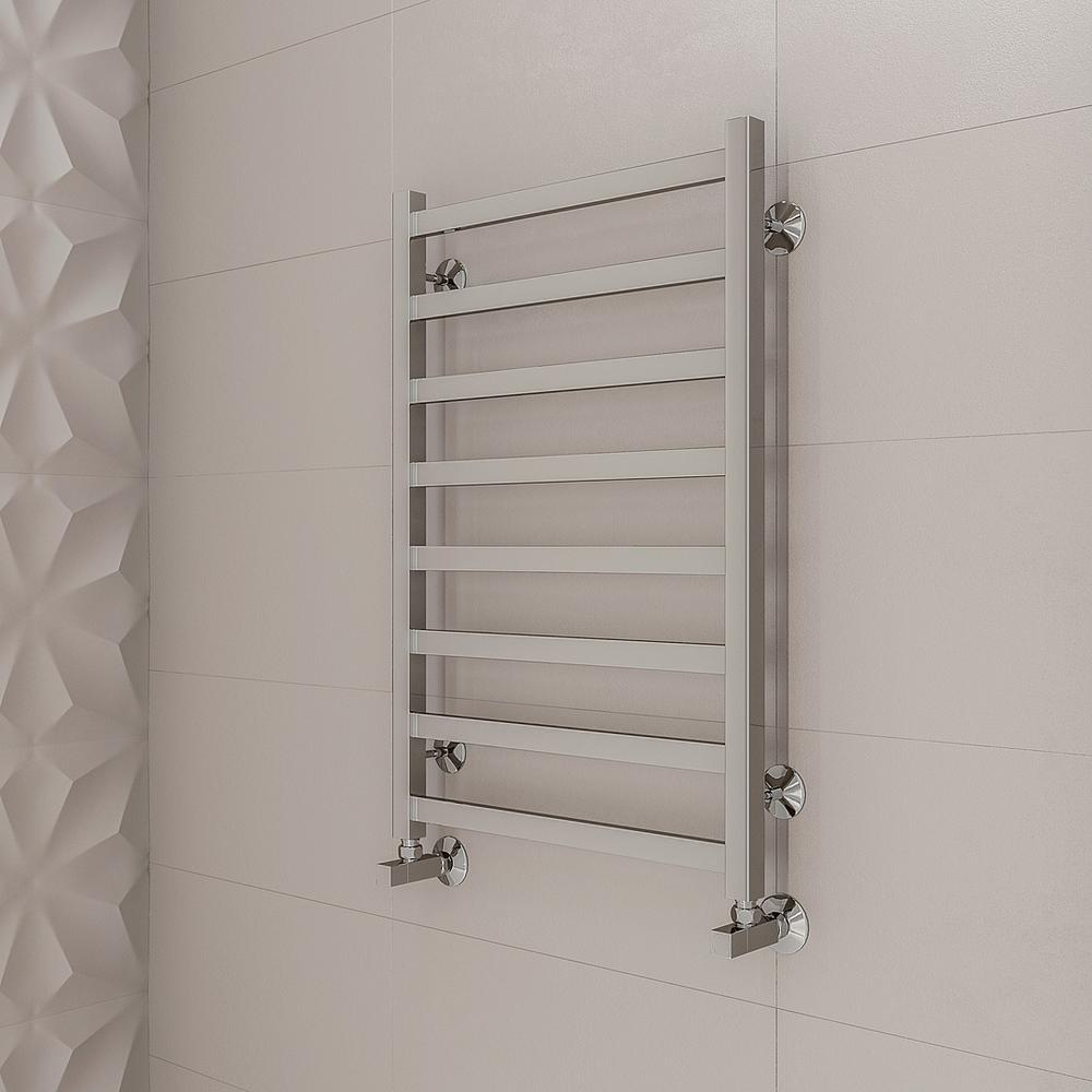 Полотенцесушитель водяной Terminus Ното П8 50х80 - известная модель, сделанная из прочного материала - нержавеющей стали, которая эффективно выполняет обогрев пространства. Отопительное оборудование имеет форму лесенку и размеры: ширина - 53.2 см, глубина - 7.4 см, высота - 80 см., что разрешает ему прекрасно разместиться в пространстве комнаты. Межосевой промежуток составляет 50 см, а диаметр подводки достигает дюйма. Подвесной монтаж и горизонтальное, нижнее направление подключения дают возможность легко установить полотенцесушитель и подключить его к системе горячего водоснабжения. Модель линейки Ното великолепно справляется с внезапными перепадами давления или температуры, а выверенная конструкция обеспечивает долговременный срок эксплуатации. Гарантийное обслуживание на товар бренда Terminus действует 10 лет. Сушилка для полотенец является лучшей в своем ценовом классе, производится в России и безотказно выполняет свои задачи.