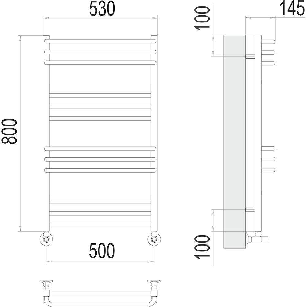 Полотенцесушитель водяной Terminus Соренто П12 50х80 - популярная модель, выполненная из ударопрочного материала - нержавеющей стали, которая предусматривает обогрев всего пространства. Отопительное оборудование имеет форму лесенку и габариты: ширина - 53 см, глубина - 14.5 см, высота - 80 см., что разрешает ему прекрасно разместиться в пространстве помещения. Межосевой промежуток составляет 50 см, а диаметр подводки достигает дюйма. Подвесной санмонтаж и горизонтальное, нижнее направление присоединения дают возможность быстро разместить полотенцесушитель и подключить его к системе горячего водоснабжения. Модель линейки Соренто превосходно справляется с перепадами давления или температуры, а выверенная конструкция гарантирует долговременный срок эксплуатации. Официальная гарантия на товар бренда Terminus составляет 10 лет. Модель считается лучшей в своем ценовом сегменте, производится в России и безотказно выполняет свои задачи.