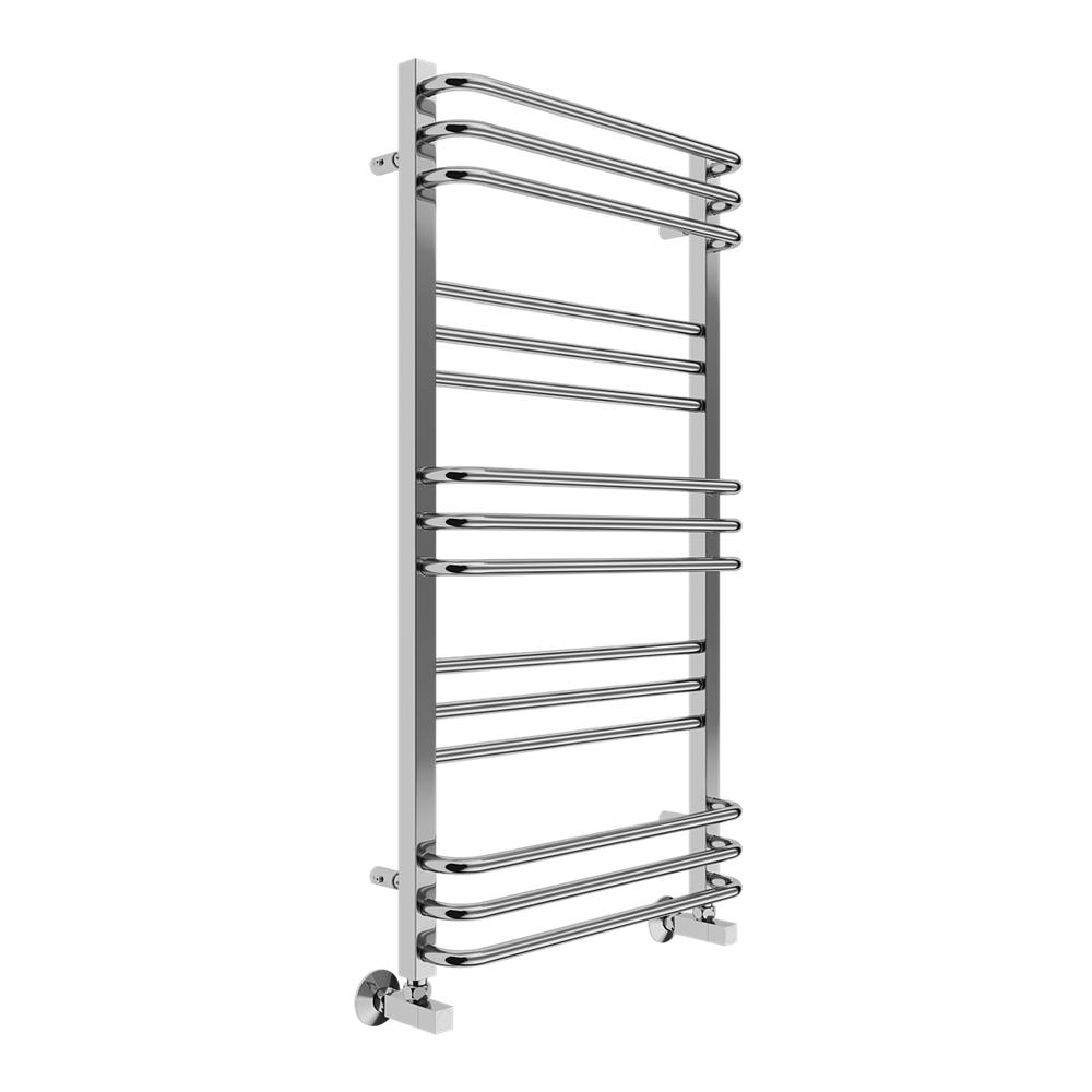 Полотенцесушитель водяной Terminus Соренто П15 50х100 - популярная модель, изготовленная из надежного материала - нержавеющей стали, которая предусматривает обогрев всего помещения. Отопительное оборудование имеет форму лесенку и параметры: ширина - 53 см, глубина - 14.5 см, высота - 100 см., что дает возможность ему как нельзя лучше расположиться в пространстве помещения. Межосевой интервал равен 50 см, а диаметр подводки достигает дюйма. Подвесной монтаж и горизонтальное, нижнее направление подсоединения дают возможность без заминок установить полотенцесушитель и подключить его к системе горячего водоснабжения. Модель линейки Соренто великолепно справляется с внезапными перепадами давления или температуры, а продуманная конструкция обеспечивает длительный срок эксплуатации. Официальная гарантия на товар бренда Terminus составляет 10 лет. Сушилка для полотенец заслужено называется лучшей в своем ценовом классе, изготавливается в России и отлично выполняет свои функции.