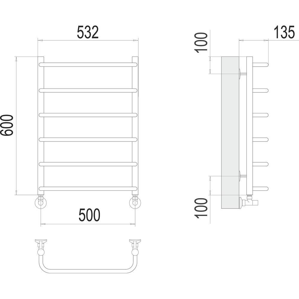 Полотенцесушитель водяной Terminus Стандарт П6 50х60 - известная модель, сделанная из прочного материала - нержавеющей стали, которая осуществляет равномерный обогрев помещения. Оборудование имеет форму лесенку и размеры: ширина - 53.2 см, глубина - 13.5 см, высота - 60 см., что разрешает ему идеально разместиться в пространстве комнаты. Межосевой интервал составляет 50 см, а диаметр подводки достигает дюйма. Подвесной монтаж и горизонтальное, нижнее направление подсоединения дают возможность в два счета установить полотенцесушитель и подключить его к системе горячего водоснабжения. Модель линейки Стандарт превосходно справляется с перепадами давления или температуры, а выверенная конструкция обеспечивает долгий период эксплуатации. Официальная гарантия на товар бренда Terminus составляет 10 лет. Модель заслужено называется лучшей в своем ценовом сегменте, изготавливается в России и безотказно выполняет свои задачи.