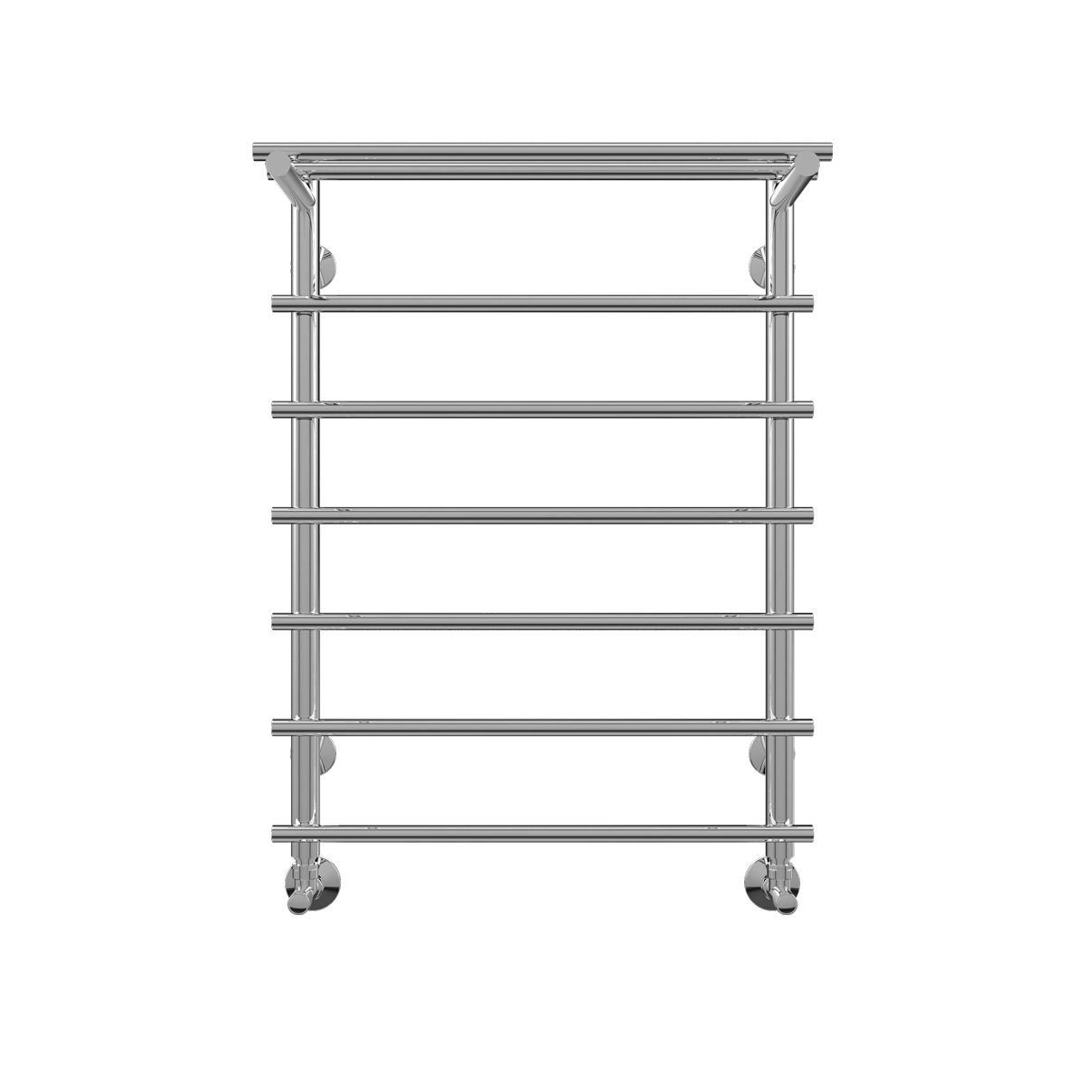 Полотенцесушитель водяной Terminus Ватра с полкой П7 500x696 - функциональная модель, сделанная из ударопрочного материала - нержавеющей стали, которая предусматривает обогрев всего пространства. Отопительное оборудование имеет форму лесенку и параметры: ширина - 56 см, глубина - 19.5 см, высота - 69.6 см., что позволяет ему идеально расположиться в пространстве помещения. Межосевой промежуток равен 50 см, а диаметр подводки достигает 1/2 дюйма. Подвесной монтаж и горизонтальное или нижнее направление подключения дают возможность быстро установить полотенцесушитель и подключить его к системе горячего водоснабжения или к системе центрального отопления. Модель линейки Ватра великолепно справляется с внезапными перепадами давления или температуры, а специальная конструкция гарантирует продолжительный срок использования. Гарантийное обслуживание на товар бренда Terminus составляет 10 лет. Сушилка для полотенец заслужено называется лучшей в своей ценовой категории, изготавливается в России и качественно выполняет свои функции.