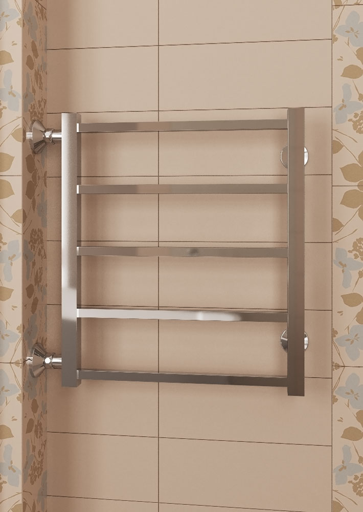 Полотенцесушитель водяной Terminus Вега П5 500x606 с боковым подключением 500 - популярная модель, выполненная из надежного материала - нержавеющей стали, которая эффективно выполняет обогрев помещения. Оборудование имеет форму лесенку и параметры: ширина - 57.5 см, глубина - 7 см, высота - 60.6 см., что разрешает ему как нельзя лучше разместиться в пространстве помещения. Межосевой интервал составляет 50 см, а диаметр подводки достигает 1/2 дюйма. Подвесной монтаж и вертикальное или боковое направление присоединения дают возможность без заминок установить полотенцесушитель и подключить его к системе горячего водоснабжения или к системе центрального отопления. Модель линейки Вега превосходно справляется с внезапными изменениями давления или температуры, а продуманная конструкция обеспечивает длительный срок эксплуатации. Гарантийное обслуживание на товар бренда Terminus составляет 10 лет. Модель заслужено называется лучшей в своем ценовом сегменте, изготавливается в России и качественно выполняет свои задачи.