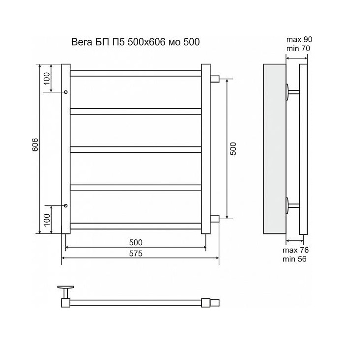 Полотенцесушитель водяной Terminus Вега П5 500x606 с боковым подключением 500