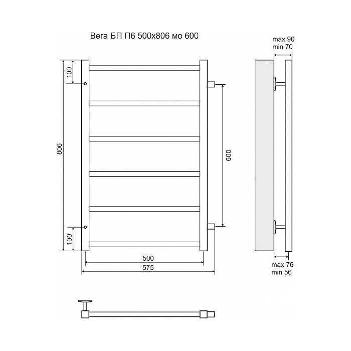 Полотенцесушитель водяной Terminus Вега П6 500x806 с боковым подключением 600 - известная модель, выполненная из ударопрочного материала - нержавеющей стали, которая эффективно выполняет обогрев пространства. Отопительное оборудование имеет форму лесенку и параметры: ширина - 57.5 см, глубина - 7 см, высота - 80.6 см., что дает возможность ему идеально разместиться в пространстве душевой. Межосевой интервал составляет 60 см, а диаметр подводки достигает 1/2 дюйма. Подвесной санмонтаж и вертикальное или боковое направление подсоединения дают возможность без заминок установить полотенцесушитель и подключить его к системе горячего водоснабжения или к системе центрального отопления. Модель линейки Вега великолепно справляется с изменениями давления или температуры, а продуманная конструкция гарантирует продолжительный период использования. Гарантия на товар бренда Terminus составляет 10 лет. Модель является лучшей в своем ценовом сегменте, производится в России и отлично выполняет свои задачи.