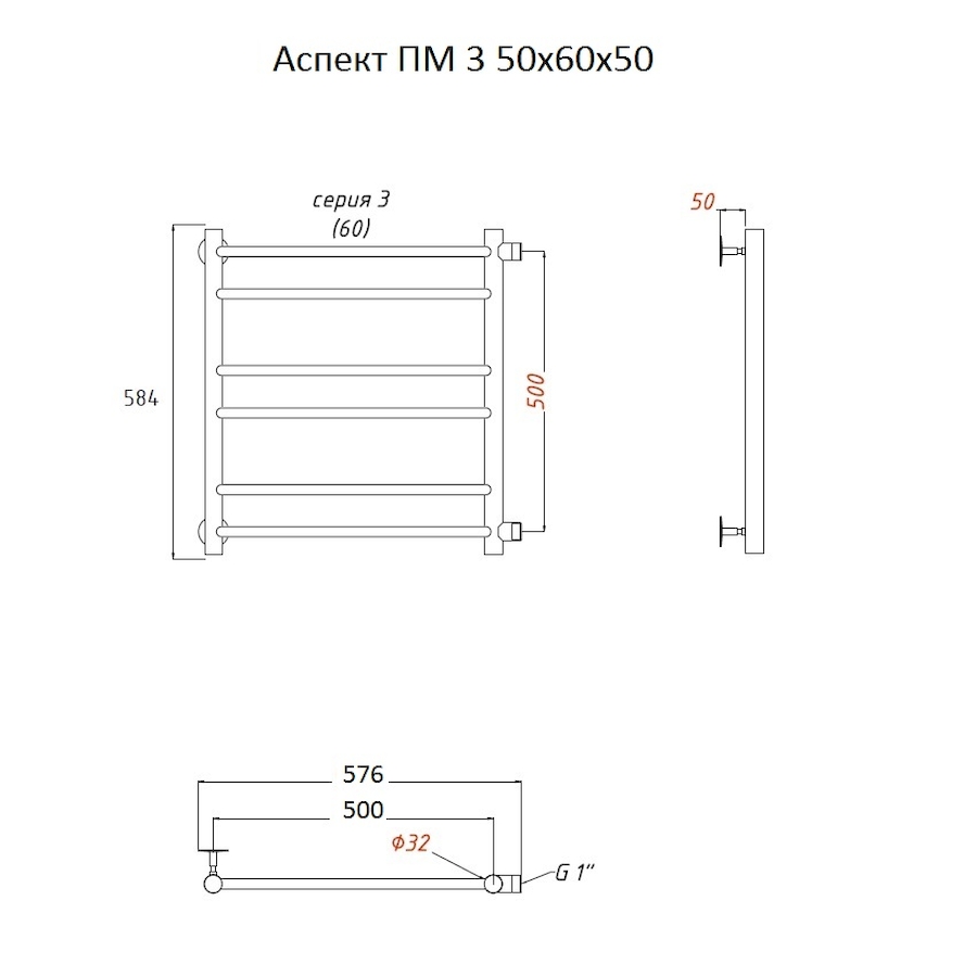 Полотенцесушитель водяной Тругор Аспект серия 3 60х50 хром