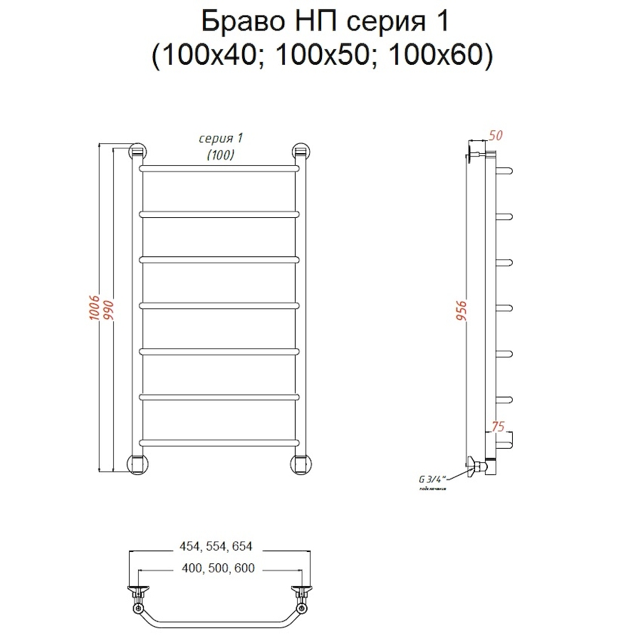 Полотенцесушитель водяной Тругор Браво серия 1 100х50 хром