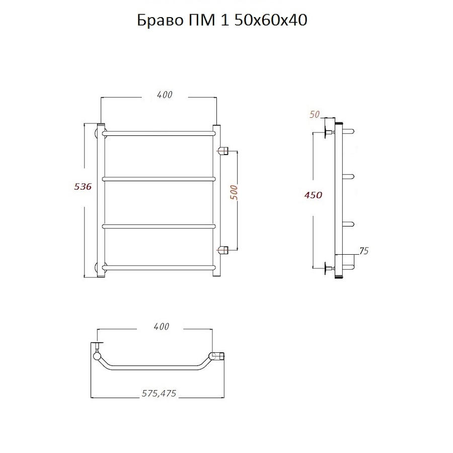 Полотенцесушитель водяной Тругор Браво серия 1 53,6х40 хром