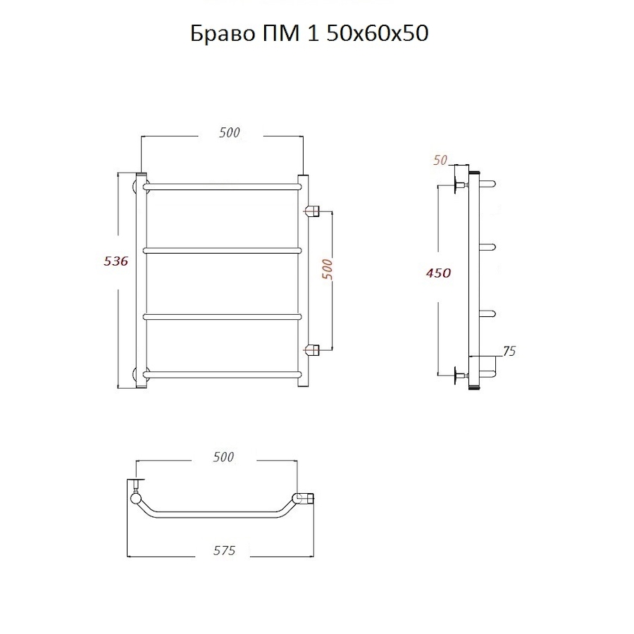 Полотенцесушитель водяной Тругор Браво серия 1 53,6х50 хром