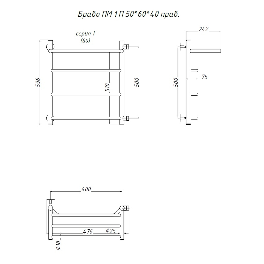 Полотенцесушитель водяной Тругор Браво серия 1 60х40 хром, с полкой, подключение правое - функциональная модель, сделанная из ударопрочного материала - нержавеющей стали, которая предусматривает обогрев всего помещения. Оборудование имеет форму лесенку и габариты: ширина - 47.6 см, глубина - 29.2 см, высота - 59.6 см., что дает возможность ему идеально вписаться в пространство комнаты. Межосевой промежуток равен 40 см, а диаметр подводки достигает 1 дюйма. Подвесной монтаж и вертикальное или боковое направление подсоединения дают возможность быстро установить полотенцесушитель и подключить его к системе горячего водоснабжения или к системе центрального отопления. Модель линейки Браво серия 1 замечательно справляется с внезапными перепадами давления или температуры, а специальная конструкция обеспечивает продолжительный период использования. Гарантия на товар бренда Тругор составляет 1 год. Сушилка для полотенец считается лучшей в своем ценовом сегменте, производится в России и безотказно выполняет свои функции.