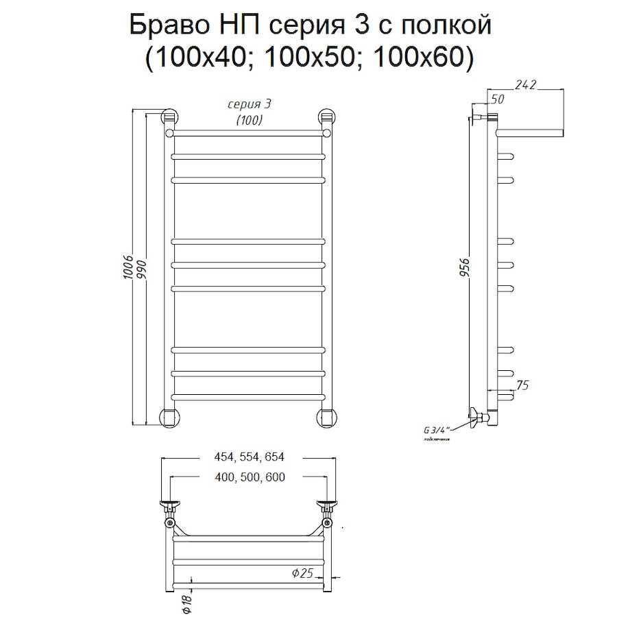 Полотенцесушитель водяной Тругор Браво серия 3 100х50 хром, с полкой - функциональная модель, сделанная из прочного материала - нержавеющей стали, которая эффективно выполняет обогрев помещения. Оборудование имеет форму лесенку и параметры: ширина - 55.4 см, глубина - 29.2 см, высота - 100.6 см., что дает возможность ему прекрасно вписаться в пространство помещения. Межосевой промежуток равен 50 см, а диаметр подводки достигает 1/2 дюйма. Подвесной санмонтаж и горизонтальное, вертикальное, диагональное, боковое, нижнее направление присоединения дают возможность с легкостью установить полотенцесушитель и подключить его к системе горячего водоснабжения или к системе центрального отопления. Модель линейки Браво серия 3 превосходно справляется с неожиданными перепадами давления или температуры, а выверенная конструкция гарантирует долгий период использования. Официальная гарантия на товар бренда Тругор составляет 1 год. Модель заслужено называется лучшей в своем ценовом классе, изготавливается в России и безотказно выполняет свои функции.