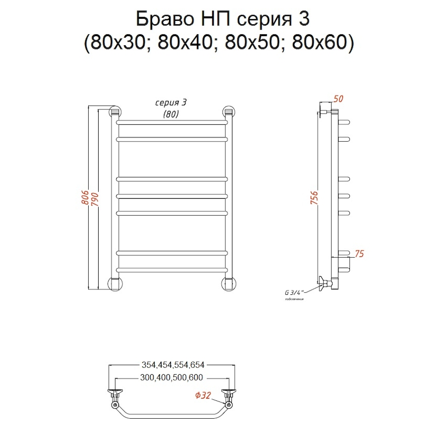 Полотенцесушитель водяной Тругор Браво серия 3 80х50 хром