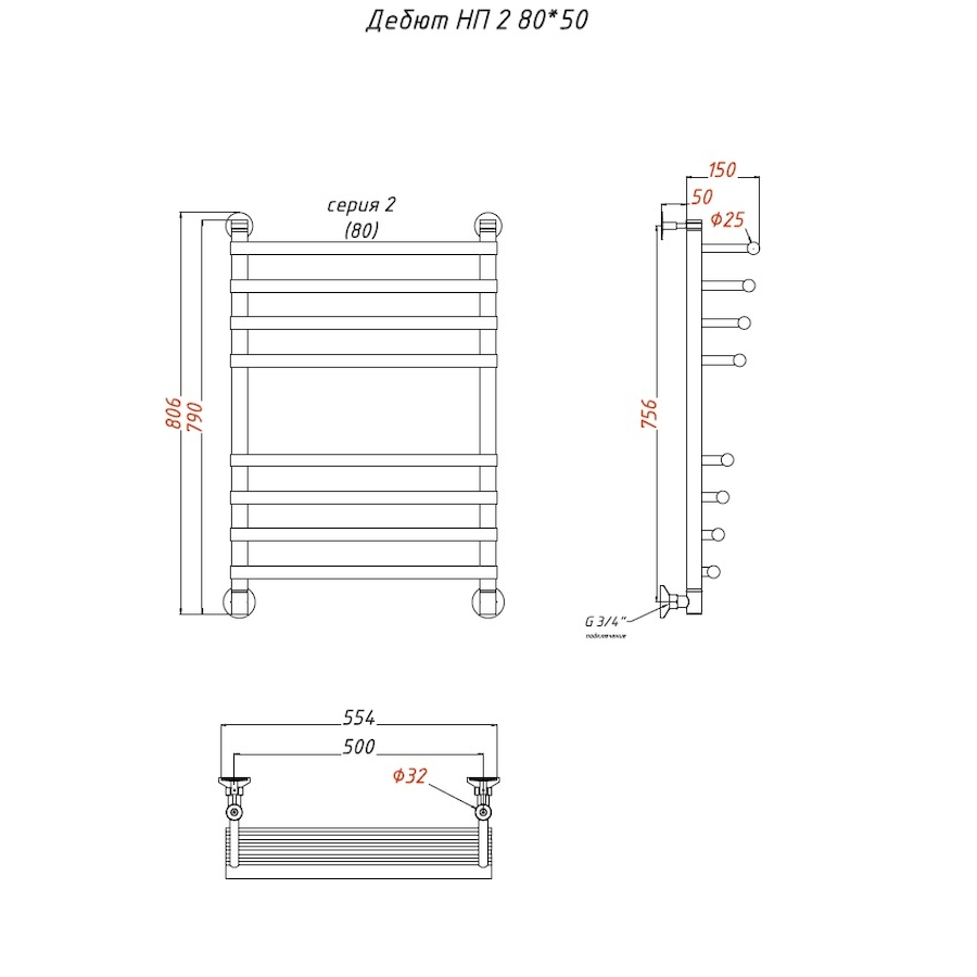 Полотенцесушитель водяной Тругор Дебют серия 2 80х50 хром, с полкой