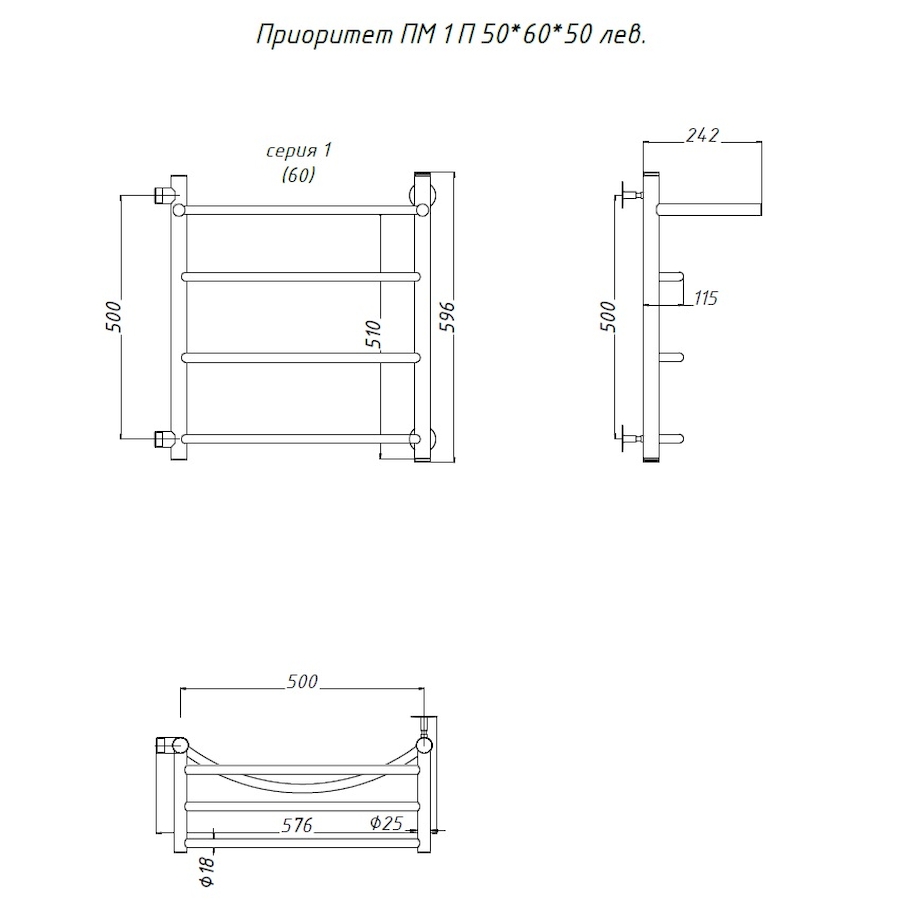 Полотенцесушитель водяной Тругор Приоритет серия 1 60х50 хром, с полкой, подключение левое - известная модель, сделанная из надежного материала - нержавеющей стали, которая осуществляет равномерный обогрев пространства. Отопительное оборудование имеет форму лесенку и параметры: ширина - 57.6 см, глубина - 29.2 см, высота - 59.6 см., что разрешает ему прекрасно разместиться в пространстве комнаты. Межосевой интервал равен 50 см, а диаметр подводки достигает 1 дюйма. Подвесной санмонтаж и вертикальное или боковое направление подключения дают возможность с легкостью установить полотенцесушитель и подключить его к системе горячего водоснабжения или к системе центрального отопления. Модель линейки Приоритет серия 1 замечательно справляется с резкими изменениями давления или температуры, а специальная конструкция обеспечивает длительный срок эксплуатации. Гарантийное обслуживание на товар бренда Тругор действует 1 год. Модель заслужено называется лучшей в своем ценовом сегменте, изготавливается в России и отлично выполняет свои задачи.