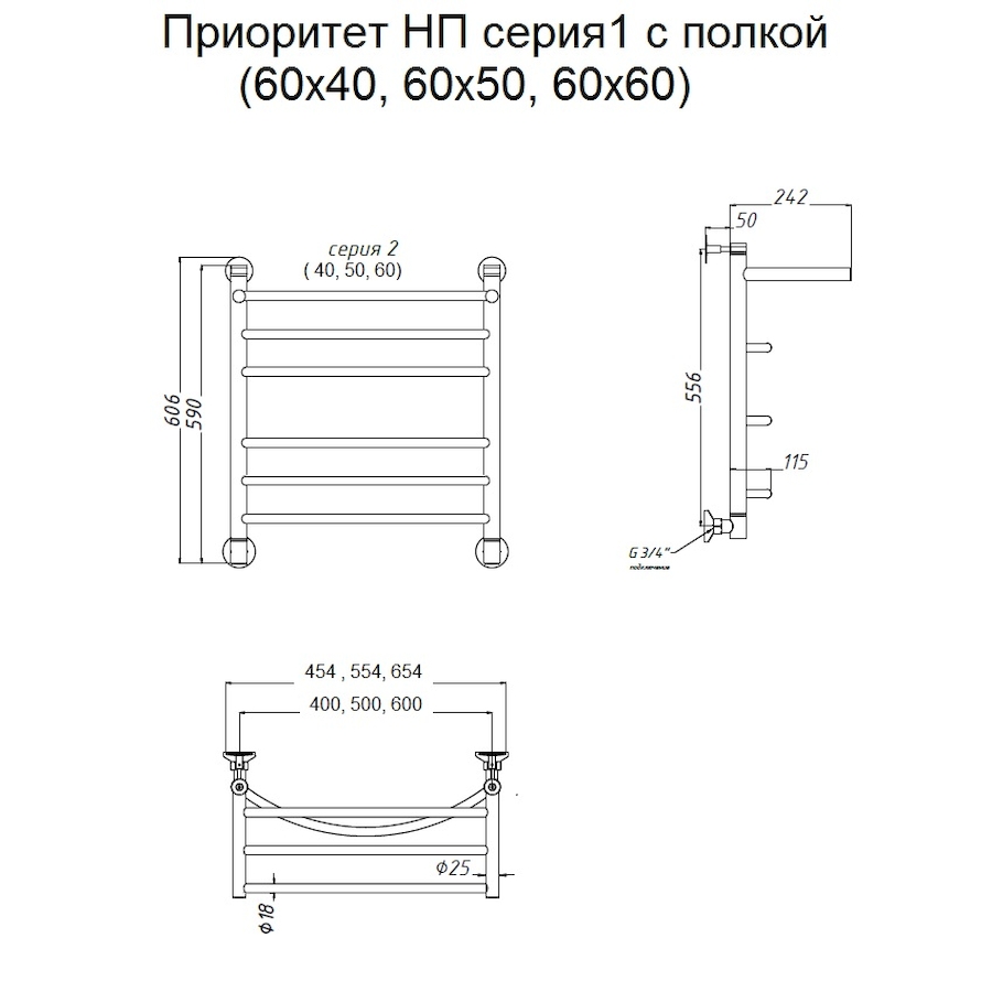 Полотенцесушитель водяной Тругор Приоритет серия 1 60х50 хром, с полкой - известная модель, сделанная из прочного материала - нержавеющей стали, которая предусматривает обогрев всего помещения. Отопительное оборудование имеет форму лесенку и параметры: ширина - 55.4 см, глубина - 29.2 см, высота - 60.6 см., что дает возможность ему прекрасно разместиться в пространстве душевой. Межосевой промежуток равен 50 см, а диаметр подводки достигает 1/2 дюйма. Подвесной санмонтаж и горизонтальное, вертикальное, диагональное, боковое, нижнее направление присоединения дают возможность в два счета установить полотенцесушитель и подключить его к системе горячего водоснабжения или к системе центрального отопления. Модель линейки Приоритет серия 1 замечательно справляется с изменениями давления или температуры, а специальная конструкция гарантирует долговременный срок использования. Официальная гарантия на товар бренда Тругор составляет 1 год. Сушилка для полотенец является лучшей в своем ценовом сегменте, изготавливается в России и безотказно выполняет свои функции.