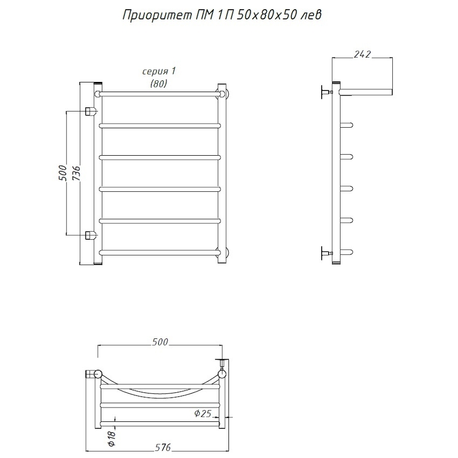 Полотенцесушитель водяной Тругор Приоритет серия 1 73,6х50 хром, с полкой, подключение левое