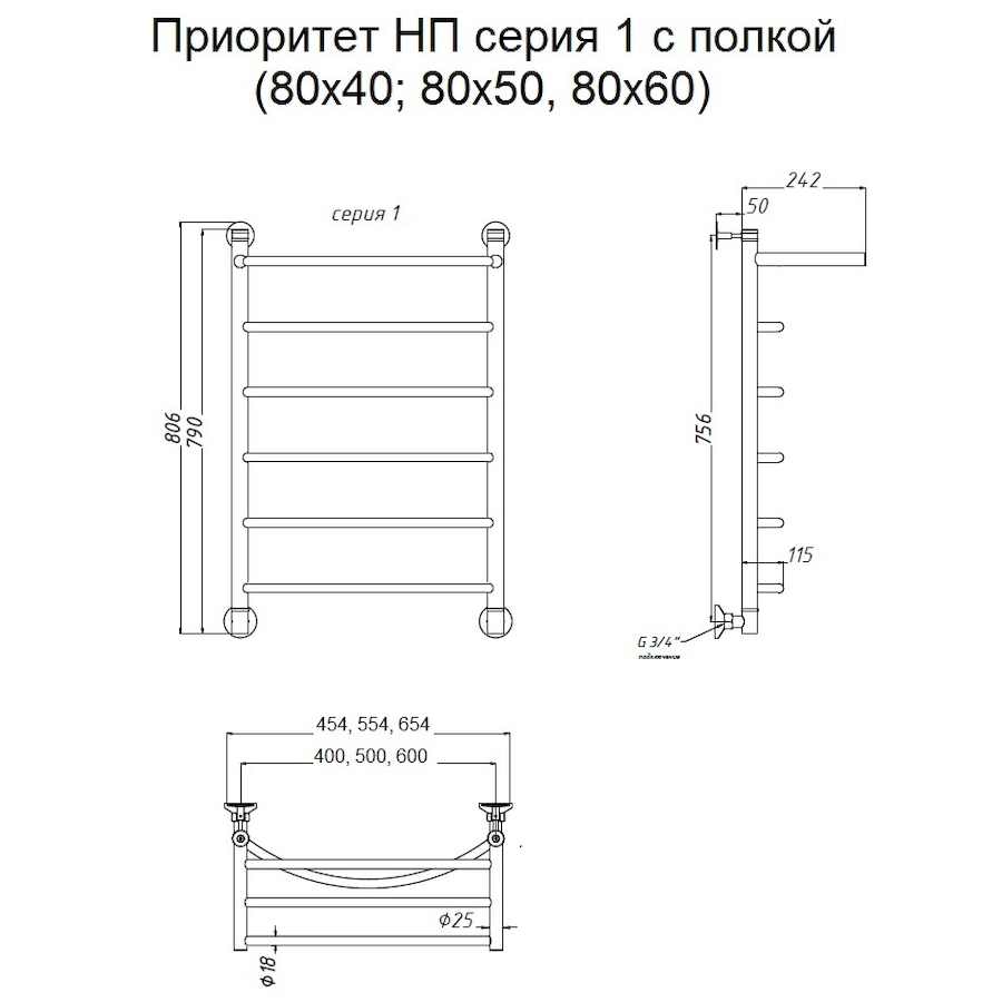 Полотенцесушитель водяной Тругор Приоритет серия 1 80х50 хром, с полкой