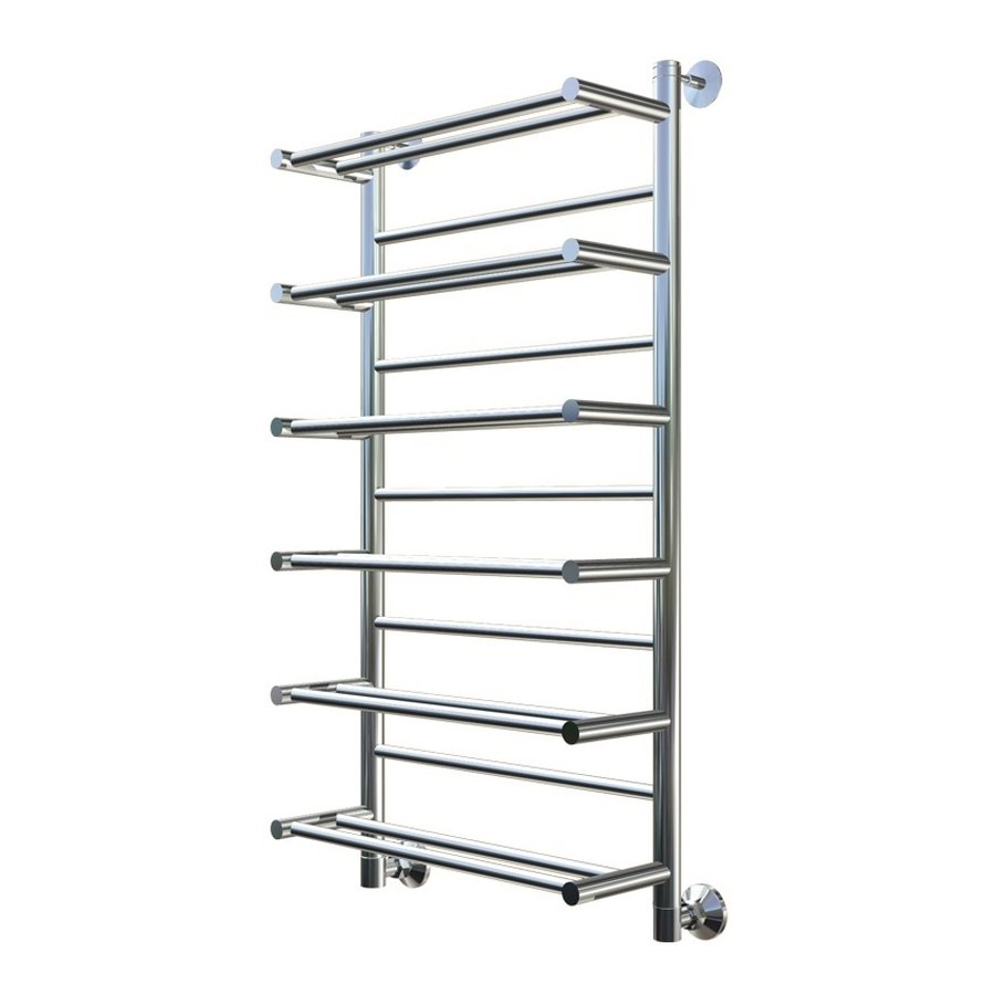 Полотенцесушитель водяной Тругор Вертикаль серия 1 100х50 хром, с полкой - известная модель, сделанная из прочного материала - нержавеющей стали, которая эффективно выполняет обогрев пространства. Отопительное оборудование имеет форму лесенку и размеры: ширина - 55.4 см, глубина - 23.4 см, высота - 100.6 см., что позволяет ему прекрасно вписаться в пространство душевой. Межосевой интервал равен 50 см, а диаметр подводки достигает 1/2 дюйма. Подвесной монтаж и горизонтальное, вертикальное, диагональное, боковое, нижнее направление присоединения дают возможность быстро разместить полотенцесушитель и подключить его к системе горячего водоснабжения или к системе центрального отопления. Модель линейки Вертикаль серия 1 замечательно справляется с внезапными перепадами давления или температуры, а специальная конструкция обеспечивает многолетний период эксплуатации. Гарантийное обслуживание на товар бренда Тругор действует 1 год. Сушилка для полотенец считается лучшей в своем ценовом классе, изготавливается в России и отлично выполняет свои функции.