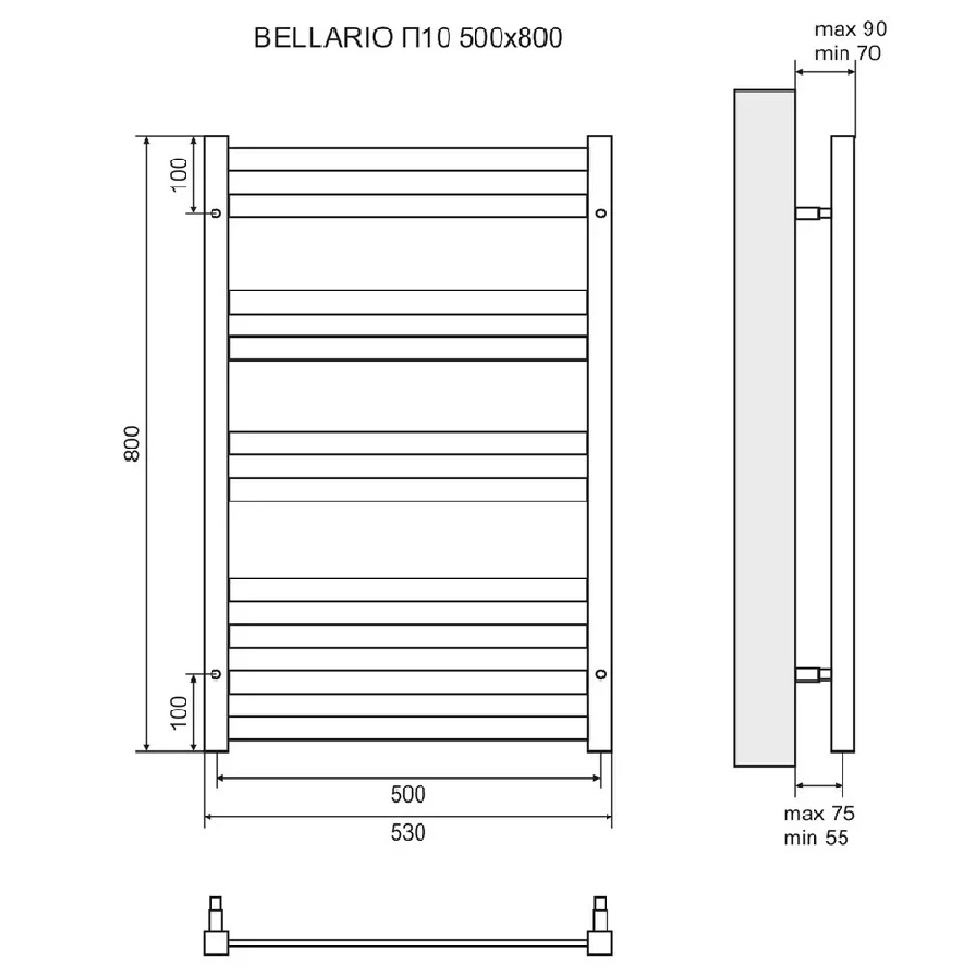 Полотенцесушитель водяной Lemark Bellario LM68810 П10 500x800 - известная модель, выполненная из прочного материала - нержавеющей стали, которая эффективно выполняет обогрев помещения. Отопительное оборудование имеет форму лесенку и параметры: ширина - 53.2 см, глубина - 7 см, высота - 80 см., что дает возможность ему отлично расположиться в пространстве душевой. Межосевой промежуток составляет 50 см, а диаметр подводки достигает 3/4 дюйма. Подвесной монтаж и горизонтальное или нижнее направление подключения дают возможность легко установить полотенцесушитель и подключить его к системе горячего водоснабжения. Модель линейки Bellario превосходно справляется с изменениями давления или температуры, а продуманная конструкция гарантирует долговременный период использования. Гарантийное обслуживание на товар бренда Lemark составляет 15 лет. Модель считается лучшей в своей ценовой категории, изготавливается в России и качественно выполняет свои задачи.
