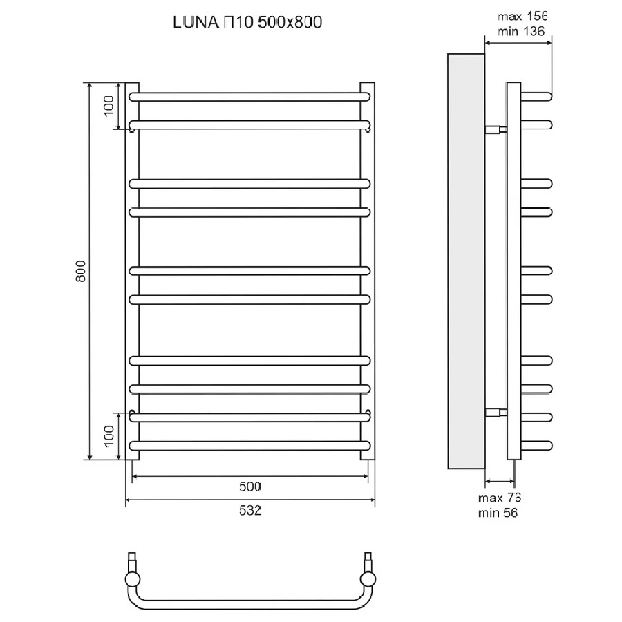 Полотенцесушитель водяной Lemark Luna LM41810 П10 500x800 - функциональная модель, изготовленная из ударопрочного материала - нержавеющей стали, которая эффективно выполняет обогрев пространства. Отопительное оборудование имеет форму лесенку и габариты: ширина - 53.2 см, глубина - 13.4 см, высота - 80 см., что разрешает ему отлично расположиться в пространстве душевой. Межосевой промежуток составляет 50 см, а диаметр подводки достигает 3/4 дюйма. Подвесной монтаж и горизонтальное или нижнее направление подсоединения дают возможность без проблем установить полотенцесушитель и подключить его к системе горячего водоснабжения. Модель линейки Luna великолепно справляется с внезапными изменениями давления или температуры, а специальная конструкция гарантирует длительный срок использования. Гарантия на товар бренда Lemark действует 15 лет. Сушилка для полотенец заслужено называется лучшей в своем ценовом классе, изготавливается в России и безотказно выполняет свои функции.