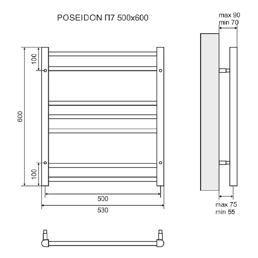 Полотенцесушитель водяной Lemark Poseidon LM42607 П7 500x600 - популярная модель, сделанная из прочного материала - нержавеющей стали, которая эффективно выполняет обогрев пространства. Отопительное оборудование имеет форму лесенку и размеры: ширина - 53.2 см, глубина - 7 см, высота - 60 см., что дает возможность ему прекрасно расположиться в пространстве душевой. Межосевой промежуток составляет 50 см, а диаметр подводки достигает 3/4 дюйма. Подвесной монтаж и горизонтальное или нижнее направление присоединения дают возможность без проблем разместить полотенцесушитель и подключить его к системе горячего водоснабжения. Модель линейки Poseidon великолепно справляется с неожиданными перепадами давления или температуры, а продуманная конструкция гарантирует долгий период эксплуатации. Официальная гарантия на товар бренда Lemark действует 15 лет. Модель заслужено называется лучшей в своей ценовой категории, изготавливается в России и качественно выполняет свои функции.