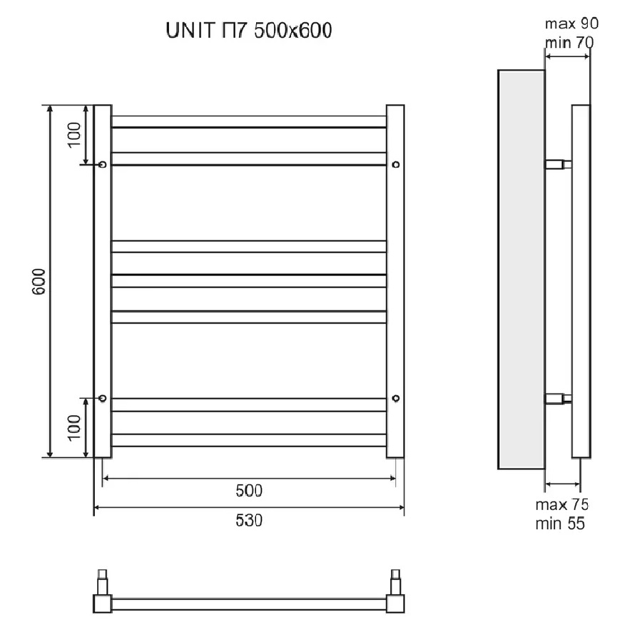 Полотенцесушитель водяной Lemark Unit LM45607 П7 500x600 - новая модель, изготовленная из ударопрочного материала - нержавеющей стали, которая предусматривает обогрев всего помещения. Отопительное оборудование имеет форму лесенку и параметры: ширина - 53.2 см, глубина - 7 см, высота - 60 см., что разрешает ему как нельзя лучше расположиться в пространстве комнаты. Межосевой интервал равен 50 см, а диаметр подводки достигает 3/4 дюйма. Подвесной монтаж и горизонтальное или нижнее направление подключения дают возможность без заминок установить полотенцесушитель и подключить его к системе горячего водоснабжения. Модель линейки Unit великолепно справляется с внезапными перепадами давления или температуры, а продуманная конструкция гарантирует долговременный период использования. Официальная гарантия на товар бренда Lemark действует 15 лет. Модель считается лучшей в своем ценовом сегменте, производится в России и качественно выполняет свои функции.