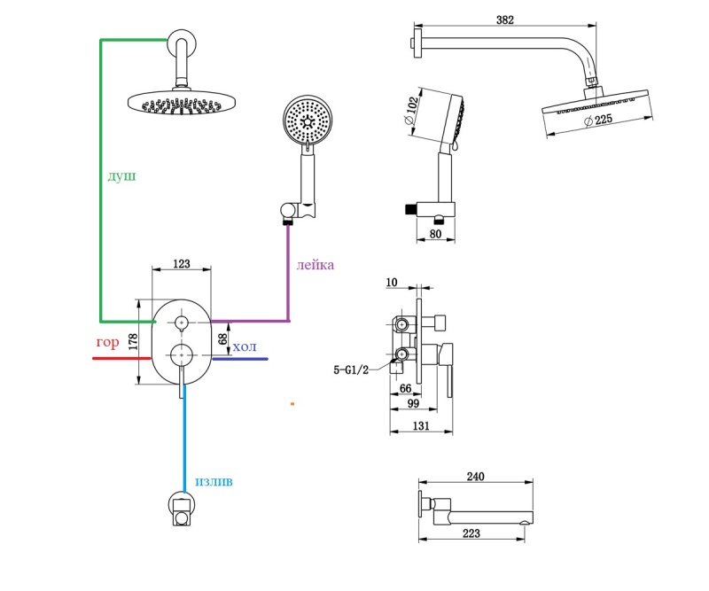 Душевая система встраиваемая Bronze de Luxe SCANDI 14582B, черный