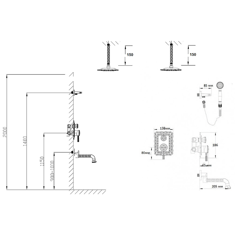 Душевая система встраиваемая Bronze de Luxe WINDSOR 10137/1DF, бронза