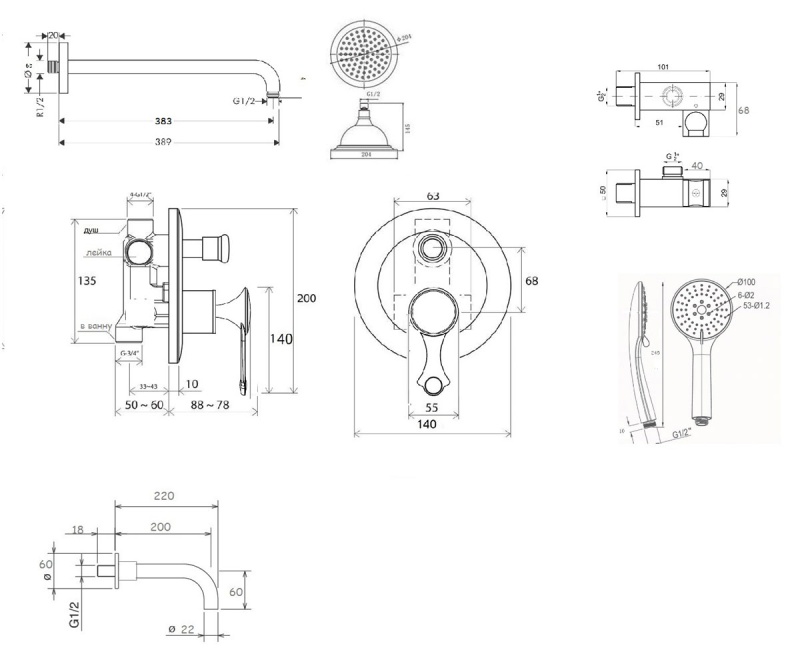 | Тип | встраиваемая душевая система |