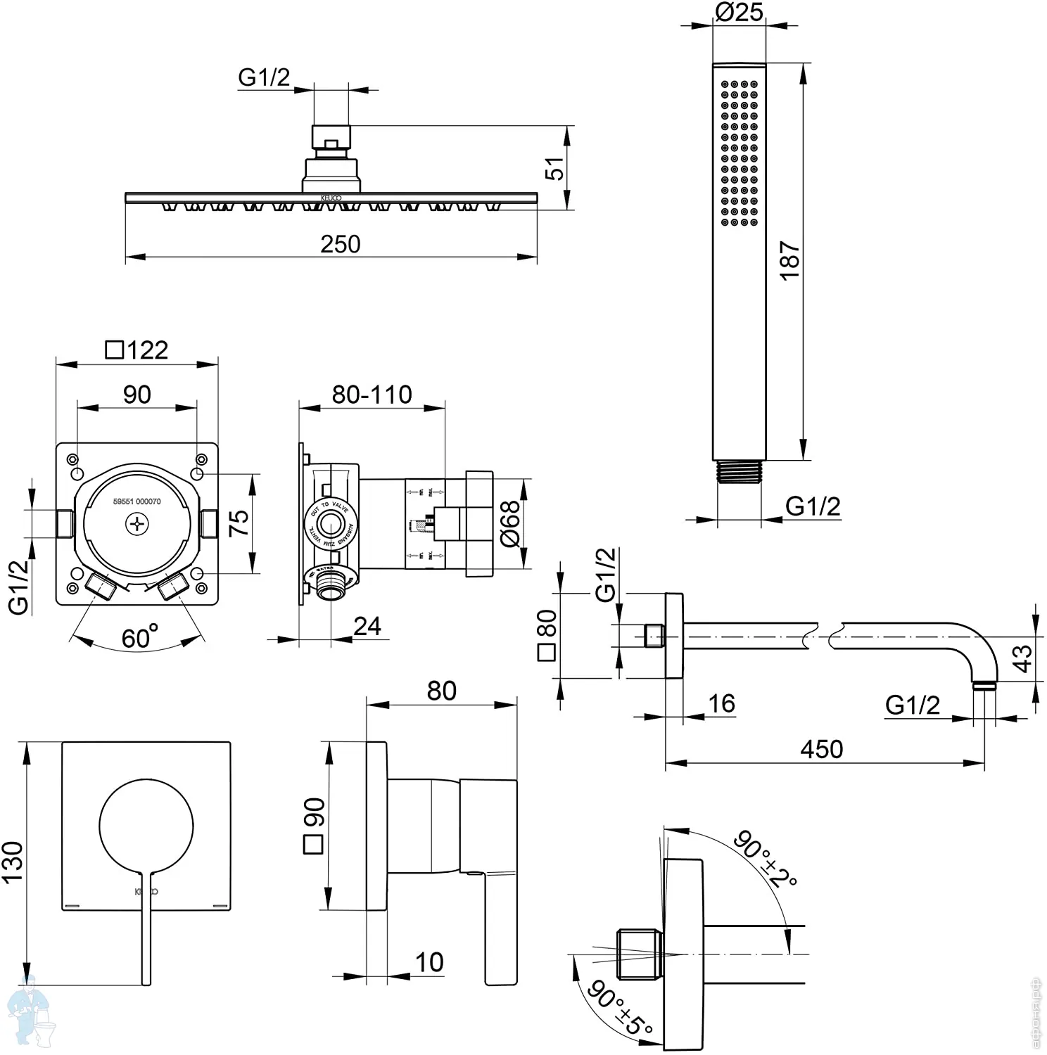 Встраиваемая душевая система Keuco IXMO 59603010002 хром
