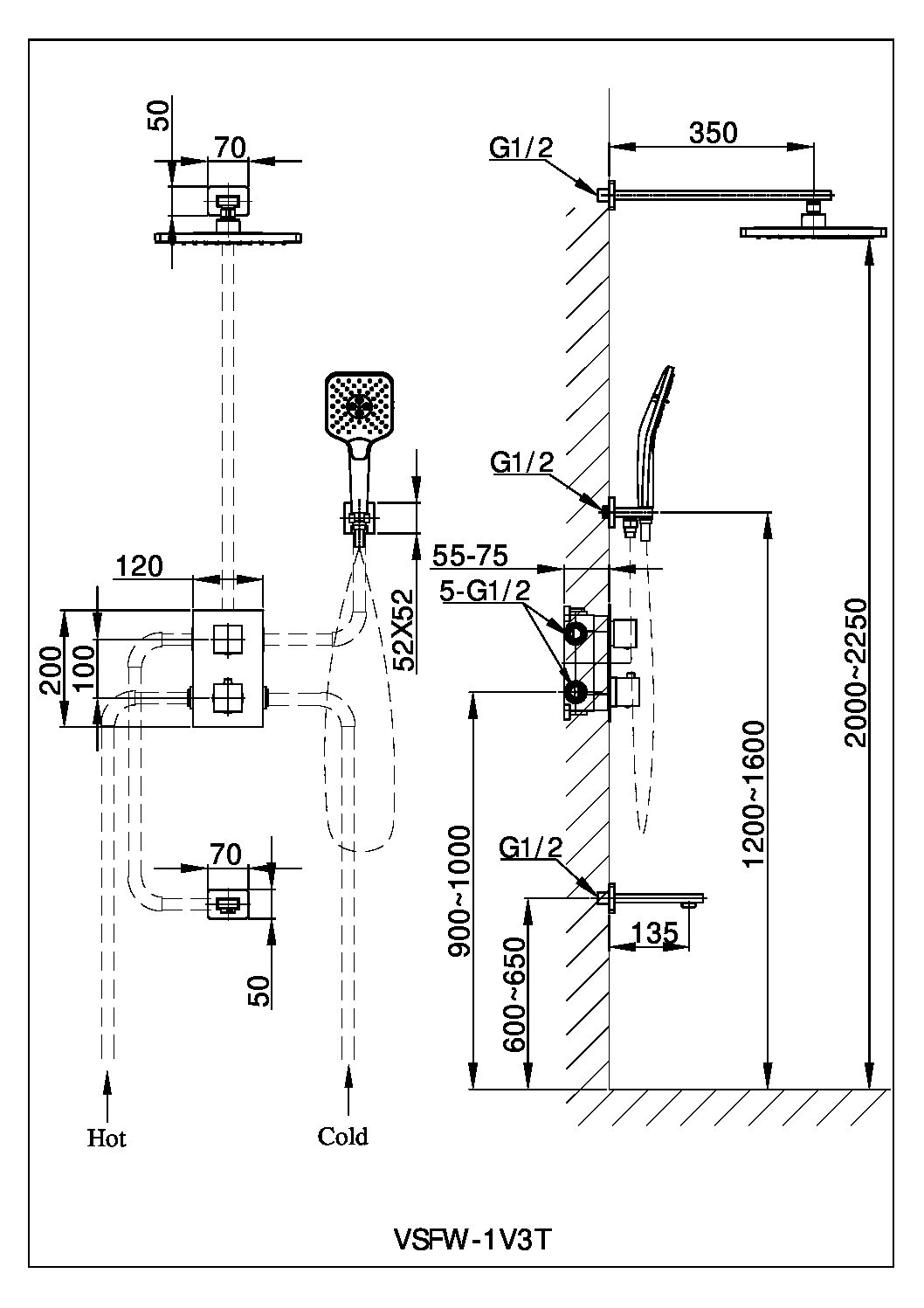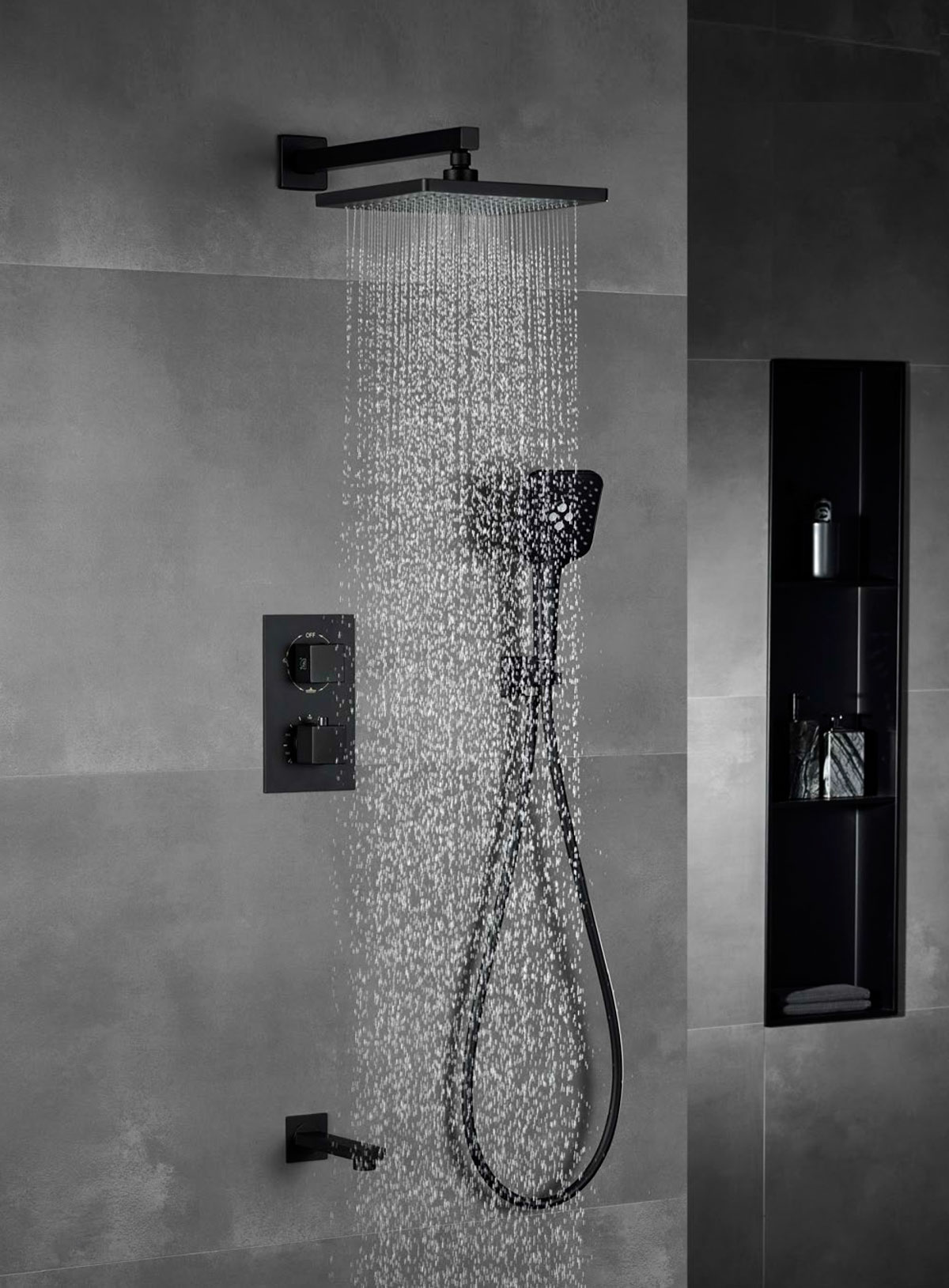Встраиваемая душевая система с термостатом Vincea Next VSFW-1N3TMB черный матовый