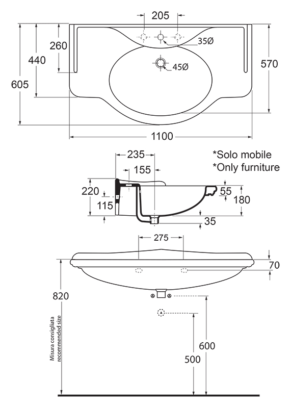 Раковина, встраиваемая сверху - одна из современных тенденций, она дает возможность легко разместить рукомойник в ванном помещении, не перегружая при этом общий дизайн-проект. Раковина встраиваемая сверху 110см Azzurra Giunone GIU200110/ALZAbi*1 белый является чудесным дополнением и завершающим акцентом в планировке любого помещения, тем более в сочетании с другими товарами коллекции Giunone. Модель из керамика порадует своей надежностью и безопасностью, а глазурованное напыление даст возможность без особых усилий выполнять все задачи по поддержанию гигиены. Прямоугольная чаша не поглощает влагу и легко переносит перепады температур. Процесс установки к столешнице выполняется очень просто, такая технология дополнительно защищает от скопления лишней влаги и отложений. Габариты изделия (высота 22 см, ширина 110 см., глубина 60.5 см.) оптимальны, как для небольших так и для больших санузлов. На рукомойник компании Azzurra есть гарантия - 5 лет, что обезопасит покупателей от любых проблем с эксплуатацией. Страна-изготовитель - Италия, является одним из лидеров в нише сантехнических товаров.