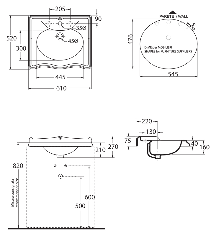 Встраиваемая сверху раковина - одна из новых тенденций, она дает возможность легко установить рукомойник в ванной комнате, не нарушая при этом общий дизайн-проект. Раковина встраиваемая сверху 60см Azzurra Jubilaeum JUB700/Mbi*1 белый станет чудесным дополнением и завершающим элементом в интерьере каждого помещения, особенно в комплекте с другими товарами коллекции Jubilaeum. Модель из керамика подкупает своей добротностью и безопасностью, а глазурованное покрытие разрешает без особых усилий осуществлять все процедуры по поддержанию порядка. Прямоугольная чаша влагостойкая и легко переносит перепады температур. Процесс монтирования к столешнице выполняется очень просто, такая технология дополнительно страхует от образования лишней влаги и отложений. Габариты изделия (высота 27 см, ширина 60 см., глубина 52 см.) оптимальны, как для небольших так и для больших санузлов. На рукомойник компании Azzurra действует гарантия - 5 лет, что застрахует покупателей от неприятных сюрпризов. Страна-производитель - Италия, является одним из лидеров на рынке сантехнических товаров.