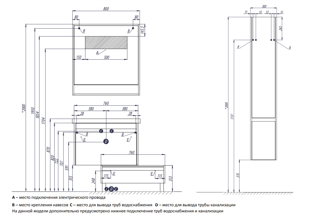 | Расположение | пристенное |