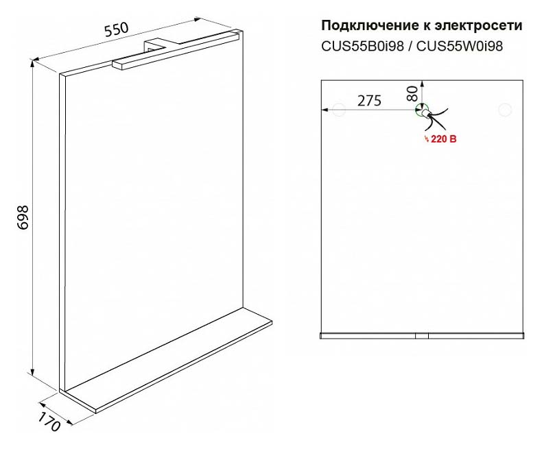 Зеркало Iddis Custo 55 с подсветкой Белое