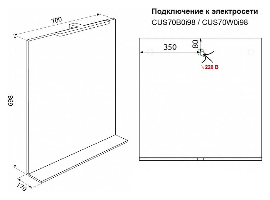 Зеркало Iddis Custo 70 с подсветкой Белое