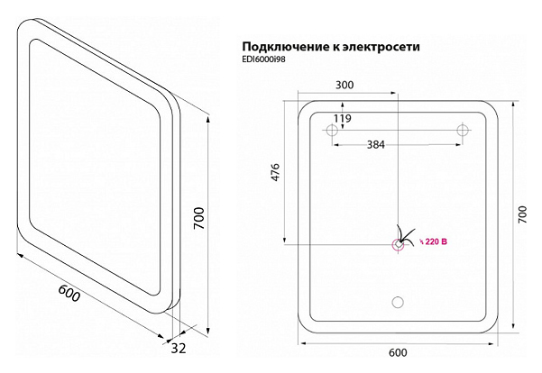 Зеркало Iddis Edifice 60 с подсветкой Хром