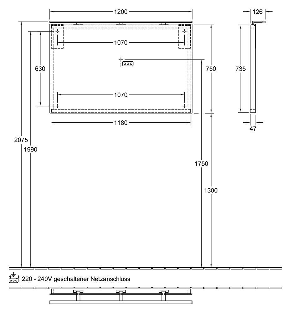 Зеркало Villeroy&Boch More to See 120 с подсветкой Матовое серебро