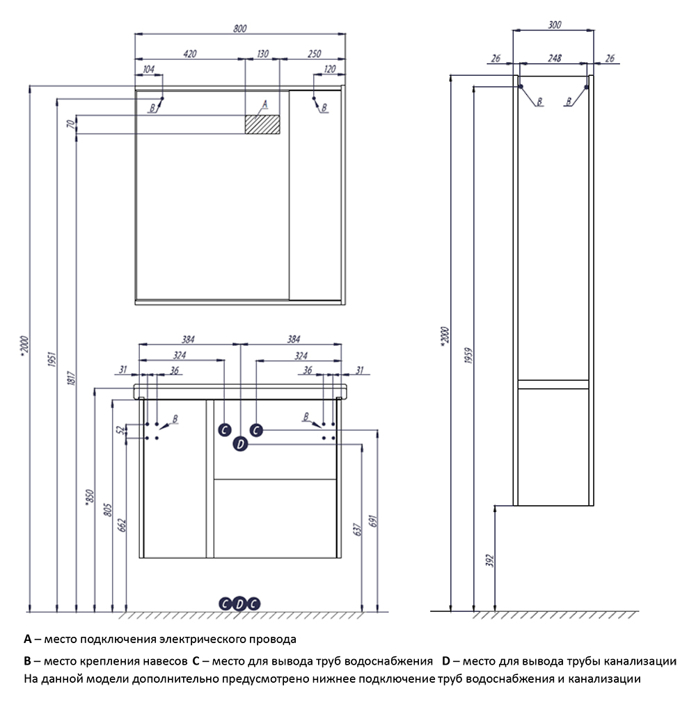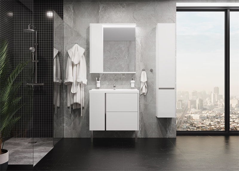 Зеркальный шкаф Акватон Стоун 80 с подсветкой 1A228302SXC80 Грецкий орех