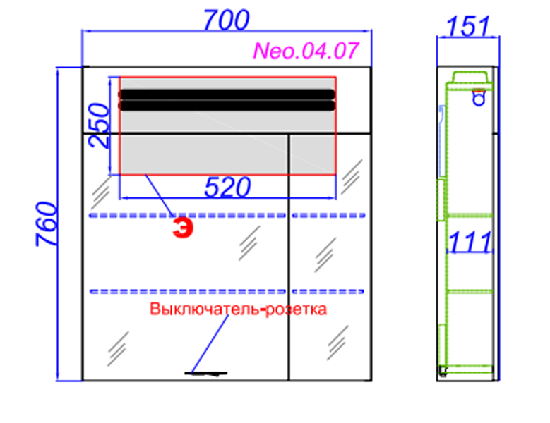 Зеркальный шкаф Aqwella Нео 70 Neo.04.07 с подсветкой Белый