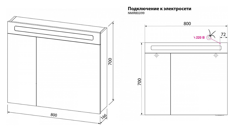 Зеркальный шкаф Iddis Mirro 80 с подсветкой 2 дверцы Белый