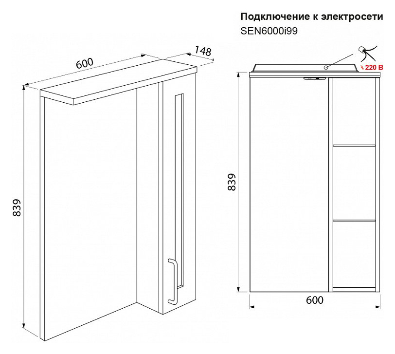 Зеркальный шкаф Iddis Sena 60 с подсветкой Белый Светлое дерево