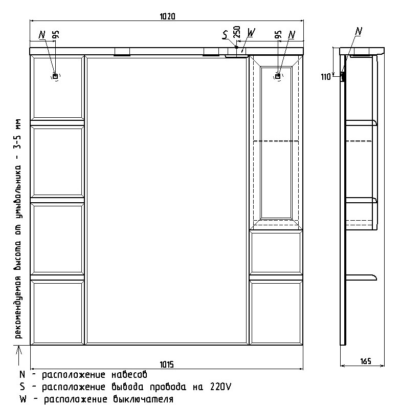 Зеркальный шкаф Rush Fiji 105 со светильниками Белый глянец