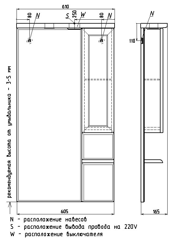 Зеркальный шкаф Rush Fiji 65 со светильником Белый глянец