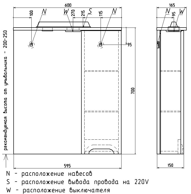 Зеркальный шкаф Rush Pioneer 60 со светильником Белый глянец